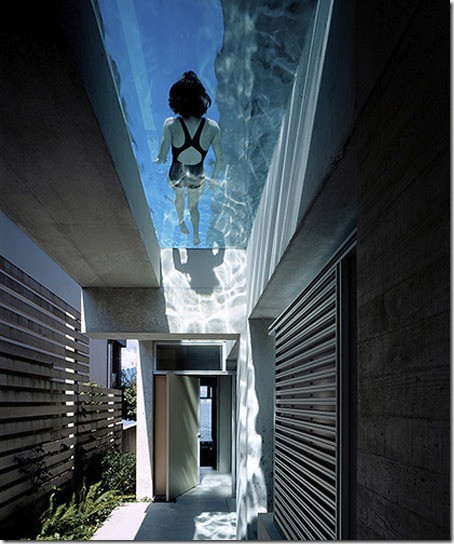 Piscine privée transparente dans une habitation moderne.