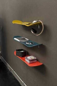 Pour les sportifs voici une idée originale ! Placez des plaches de skate board au mur. Pourquoi pas déclinez dans d'autres sports avec par exemple de vieilles raquettes de tennis à accrocher au mur.